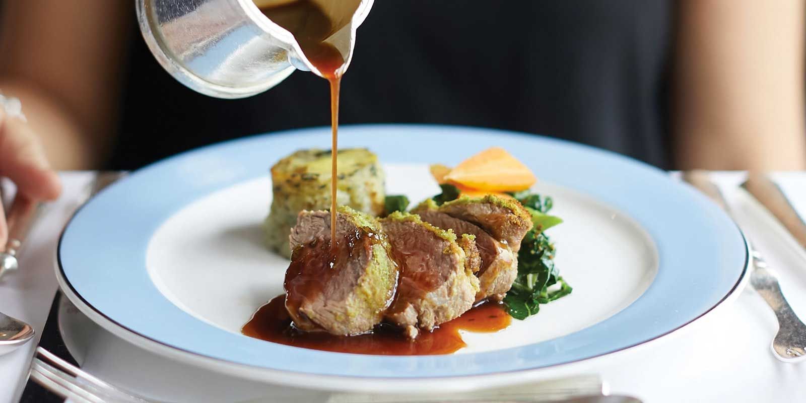 -Festive five-course lunch. British seasonal table d’hote menu.